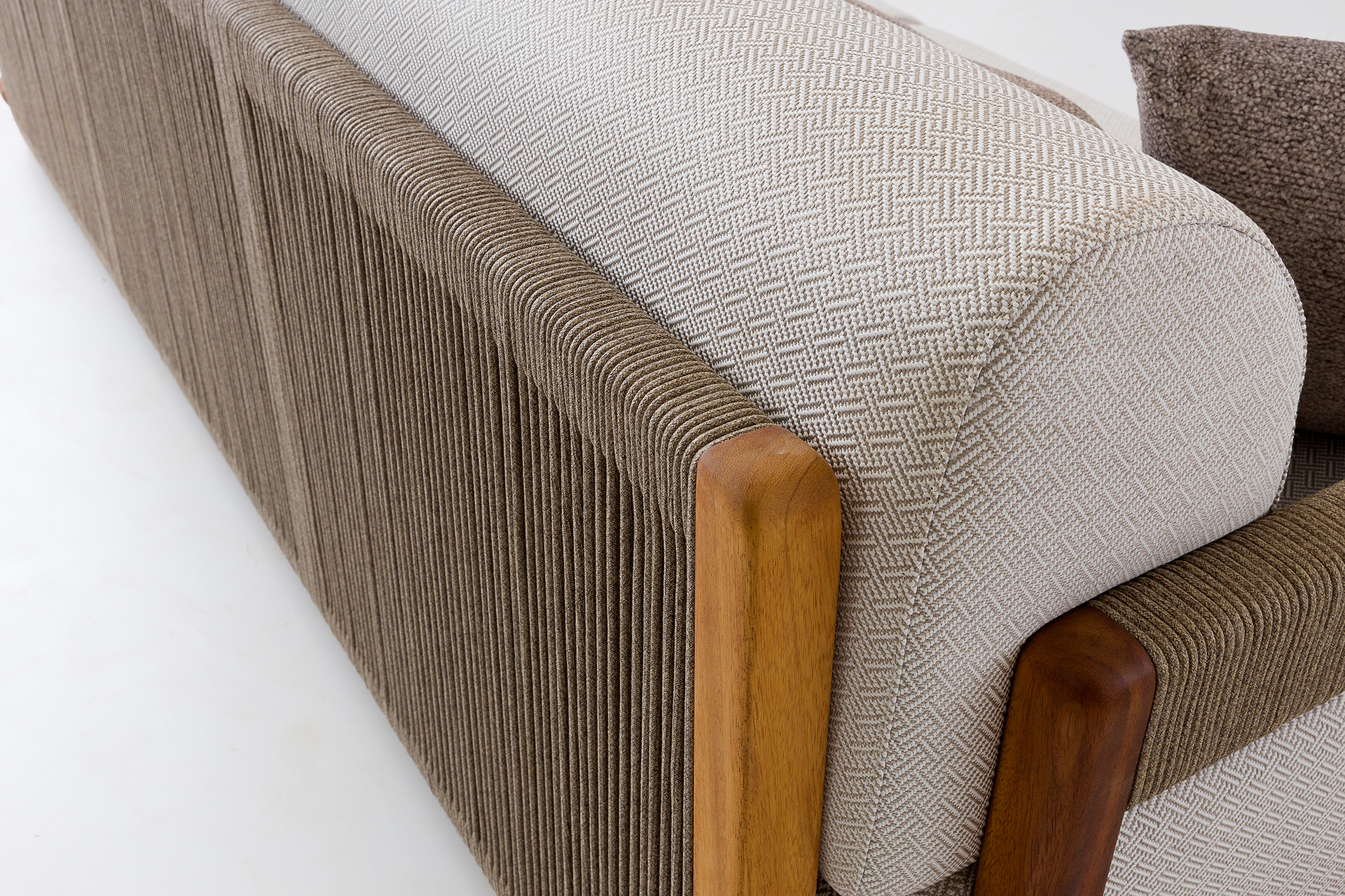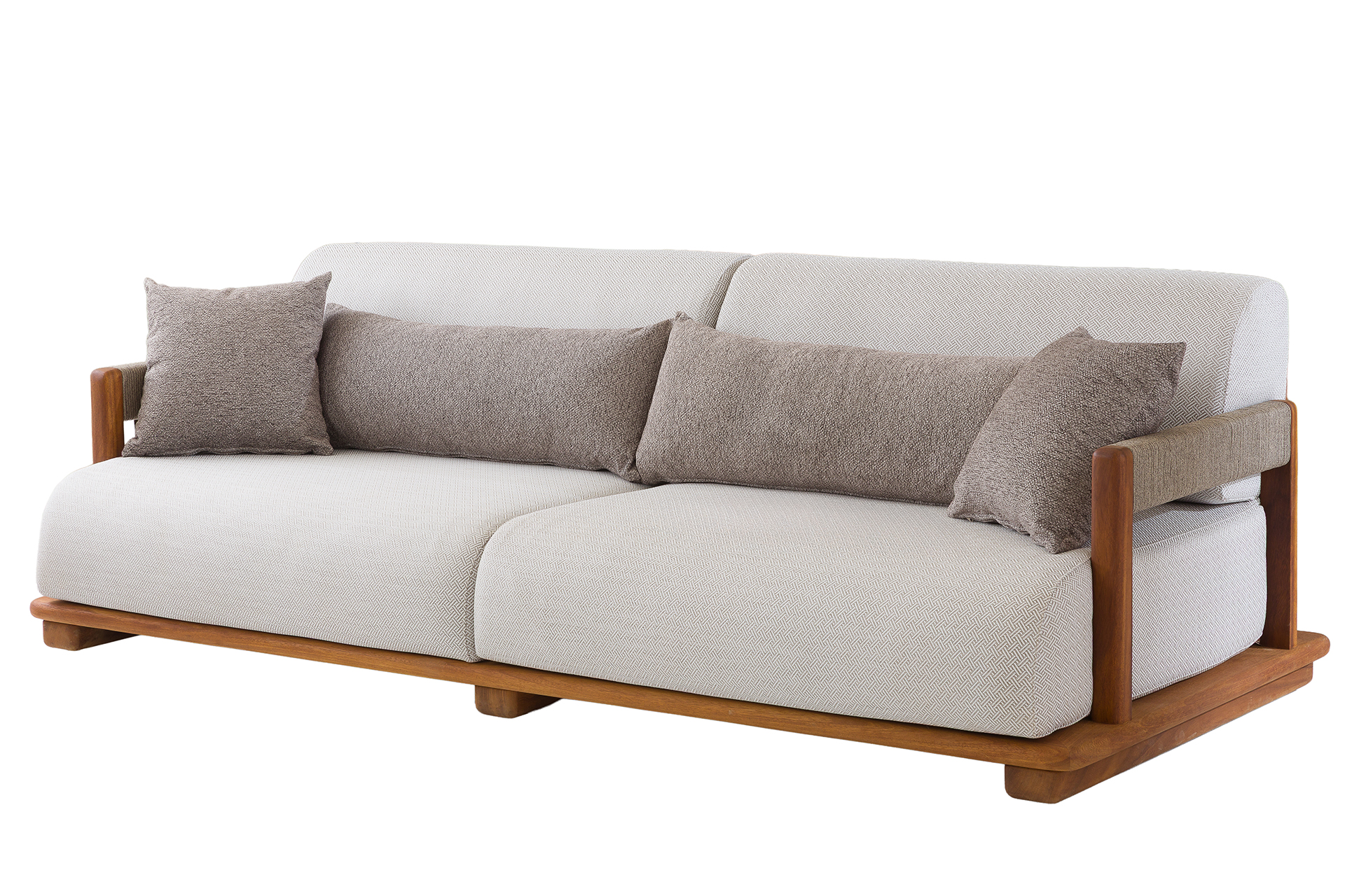 Olivia serisi, sıcak ahşap tonları ve yumuşak renkli minderleri ile doğayla uyum içinde bir görünüm sunar. Minimal çizgileri sayesinde hem modern hem de zamansız bir stil yaratır.